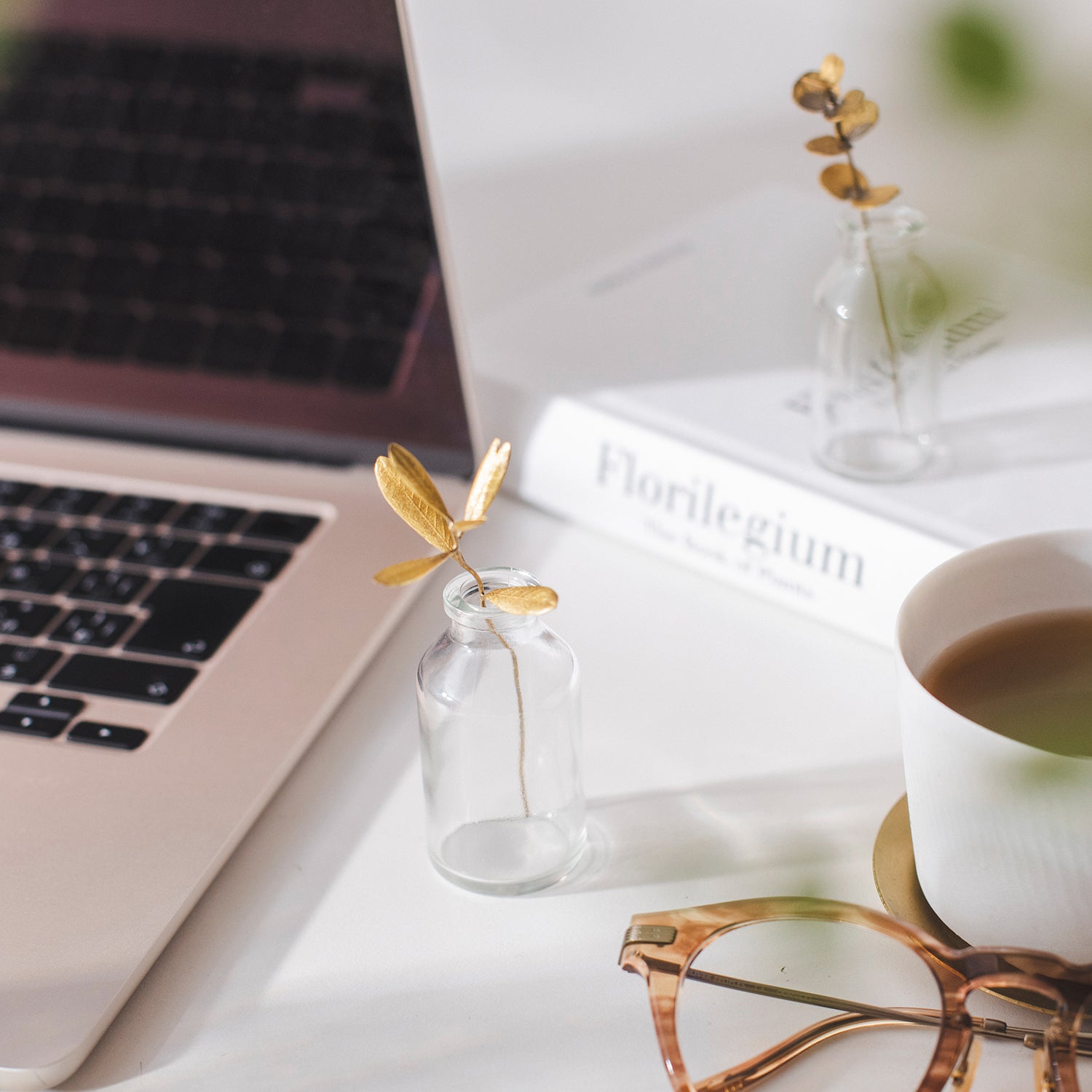 付属のガラスボトルやお手持ちの一輪挿しで小スペースでのデコレーションに。