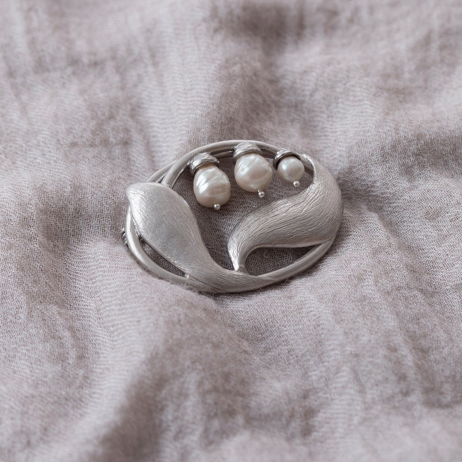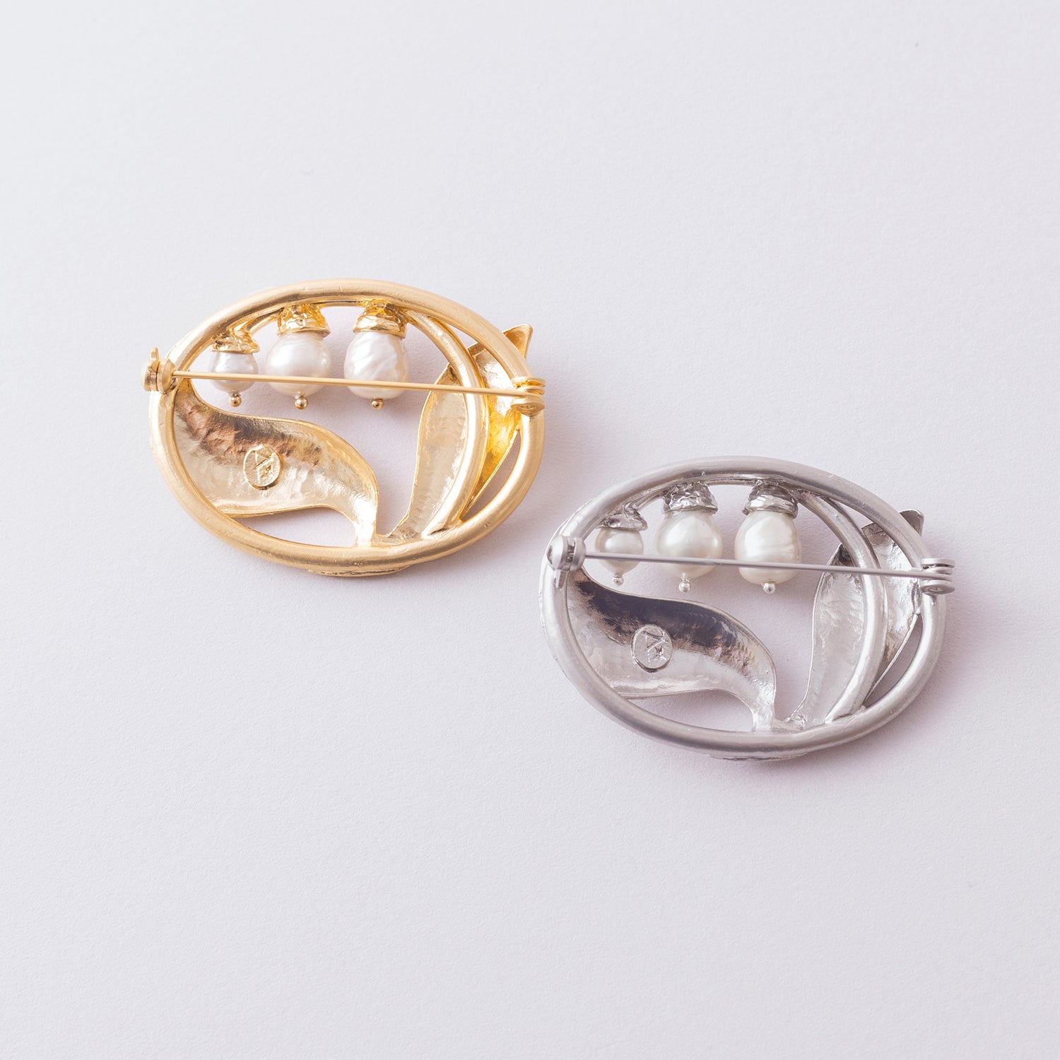ビンテージアクセサリーのデザインをオマージュしクラフトタッチなテクスチャーで仕上げたスズランモチーフのブローチです。