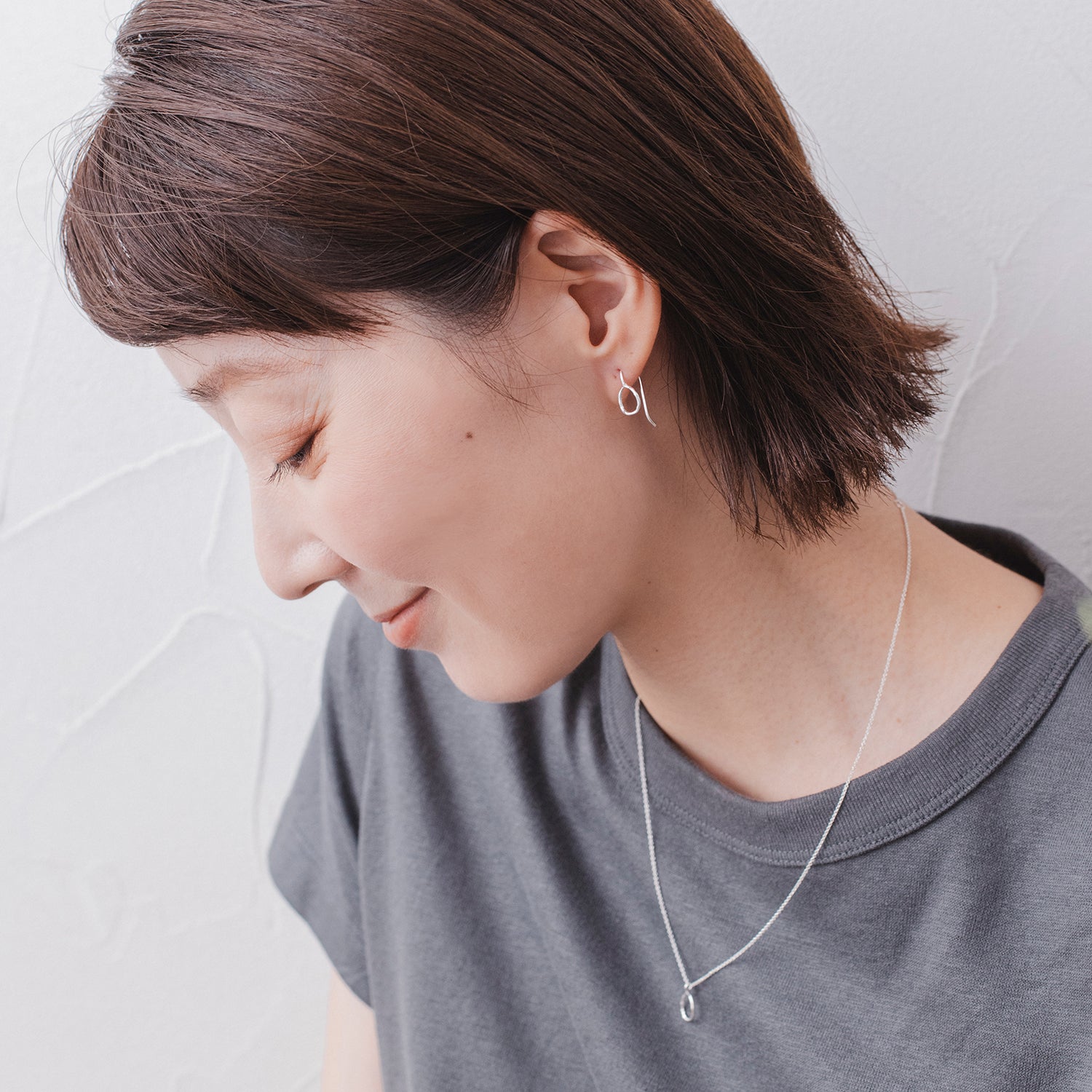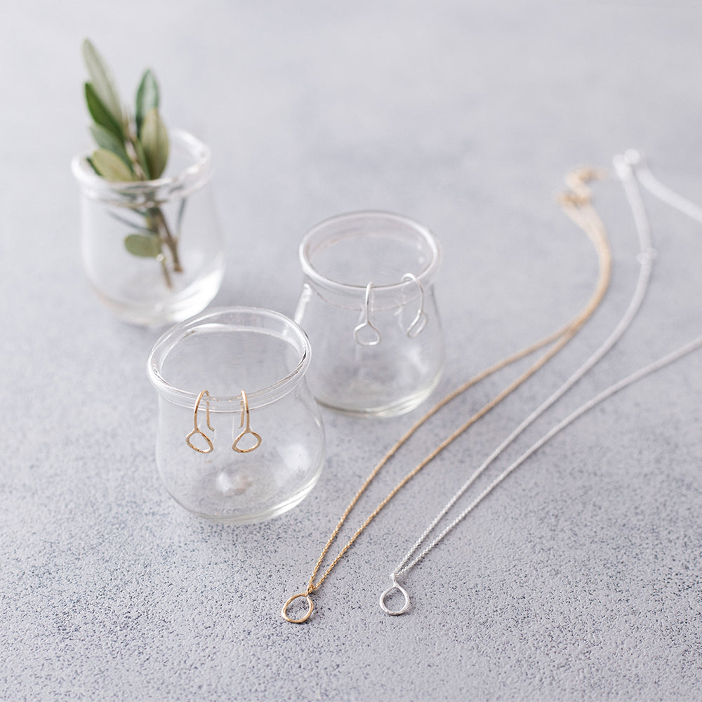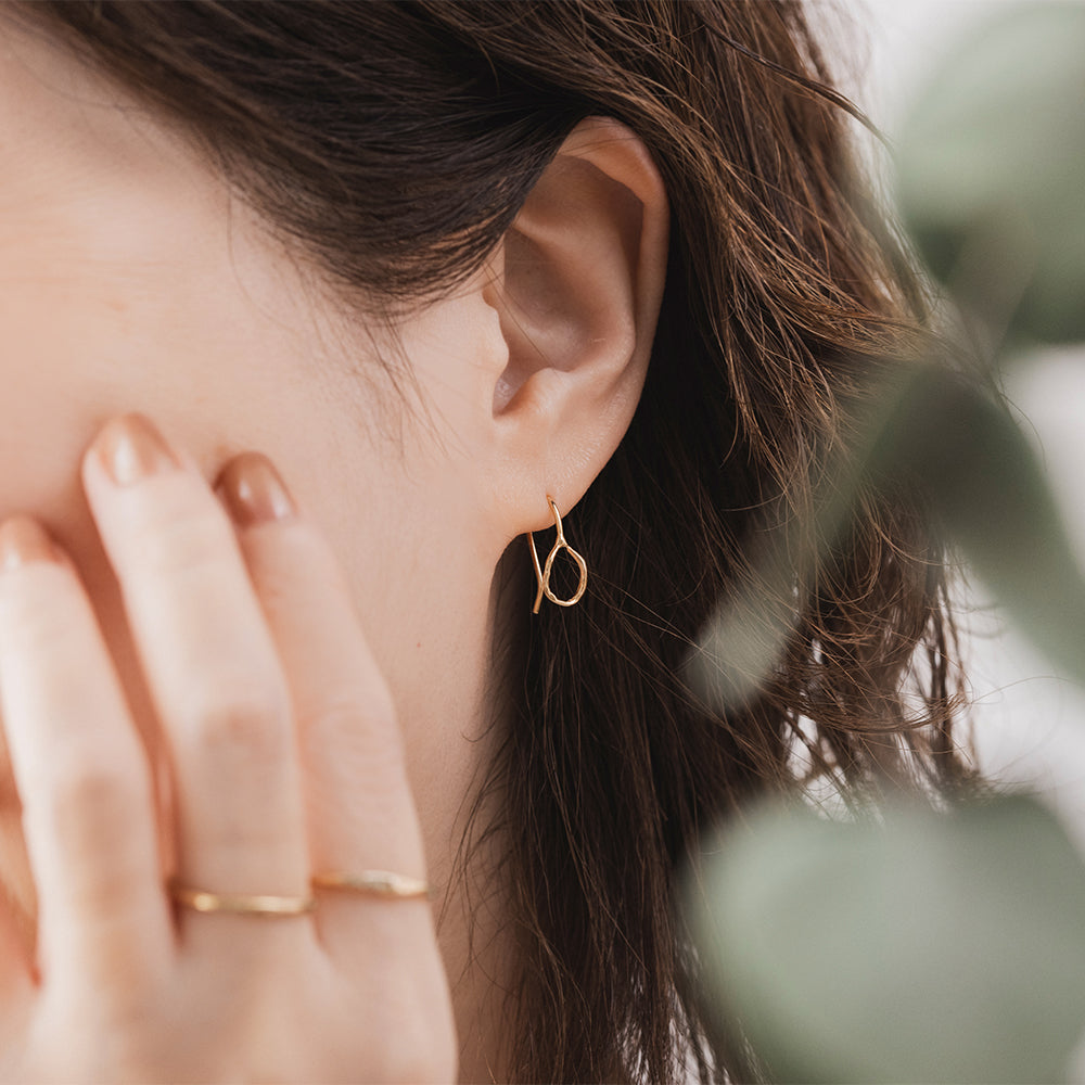 ドロップのシルエットをニュアンスのある線で表現した軽やかなフックピアスです。